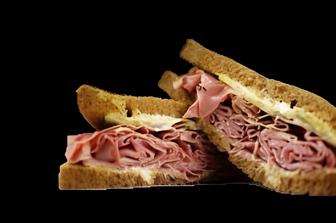Tender slices of premium ham, delicately layered between two slices of your choice of bread, offer a perfect balance of savory flavor and succulent texture.